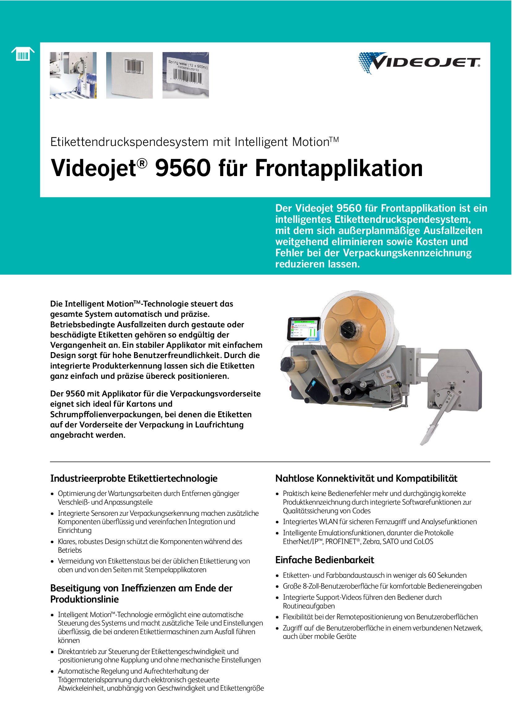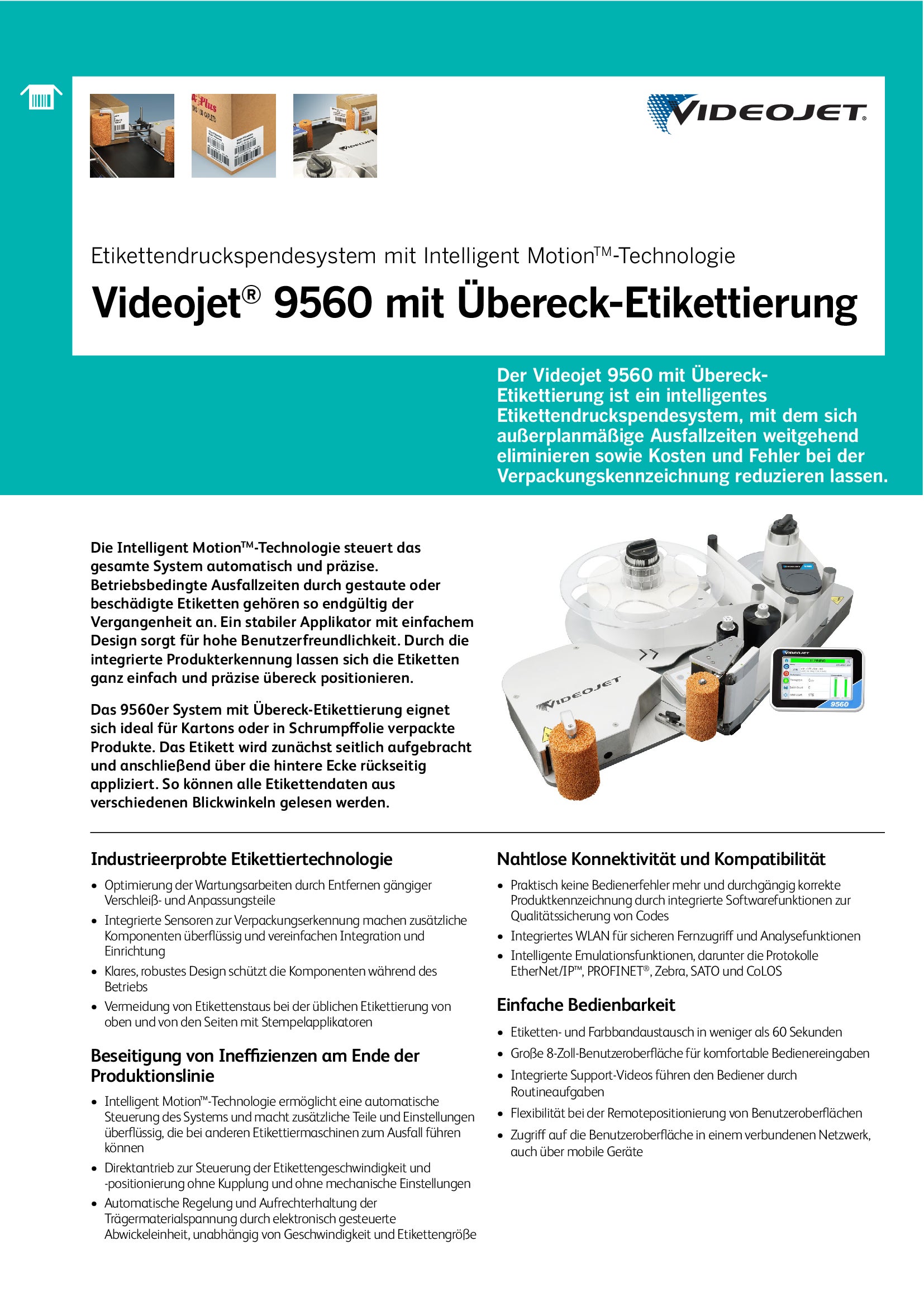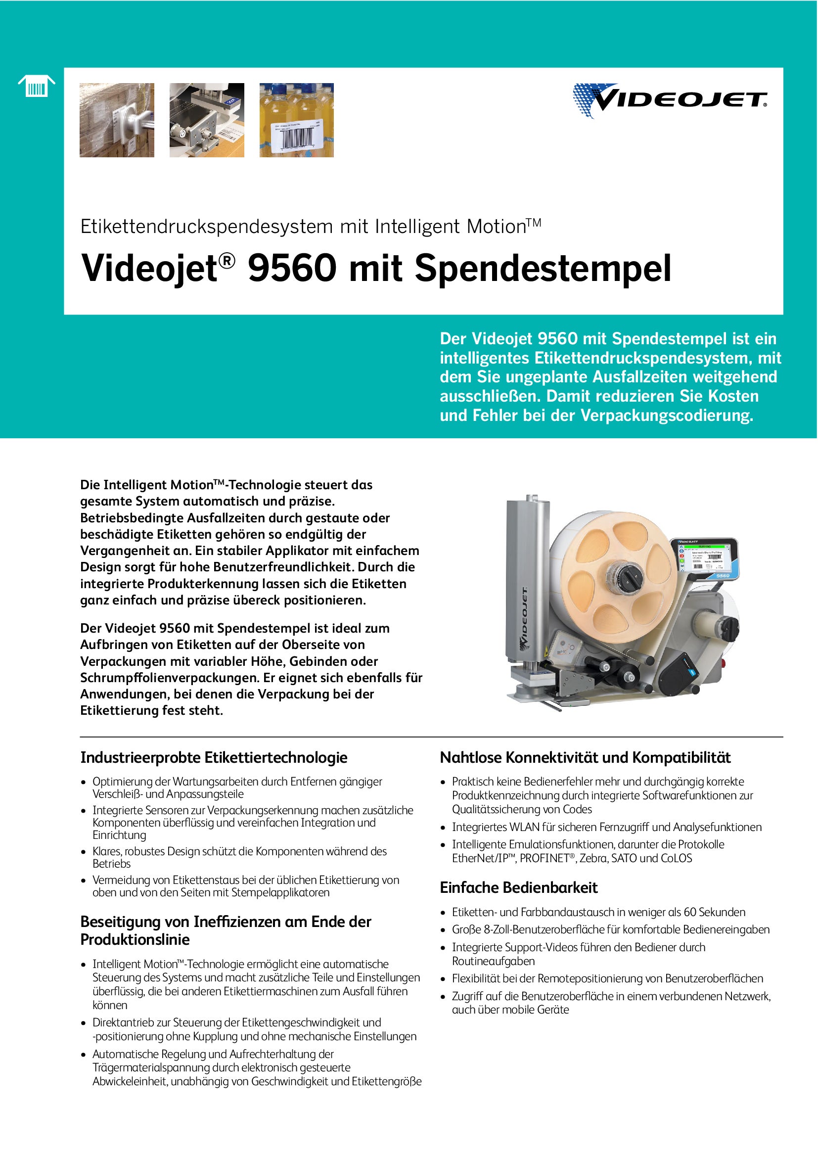 | Videojet 9560 Etikettiermaschine ![]() | Palettenetikettiersystem Videojet 9560 PL ![]() | Videojet 210 Etikettenapplikator ![]() | |