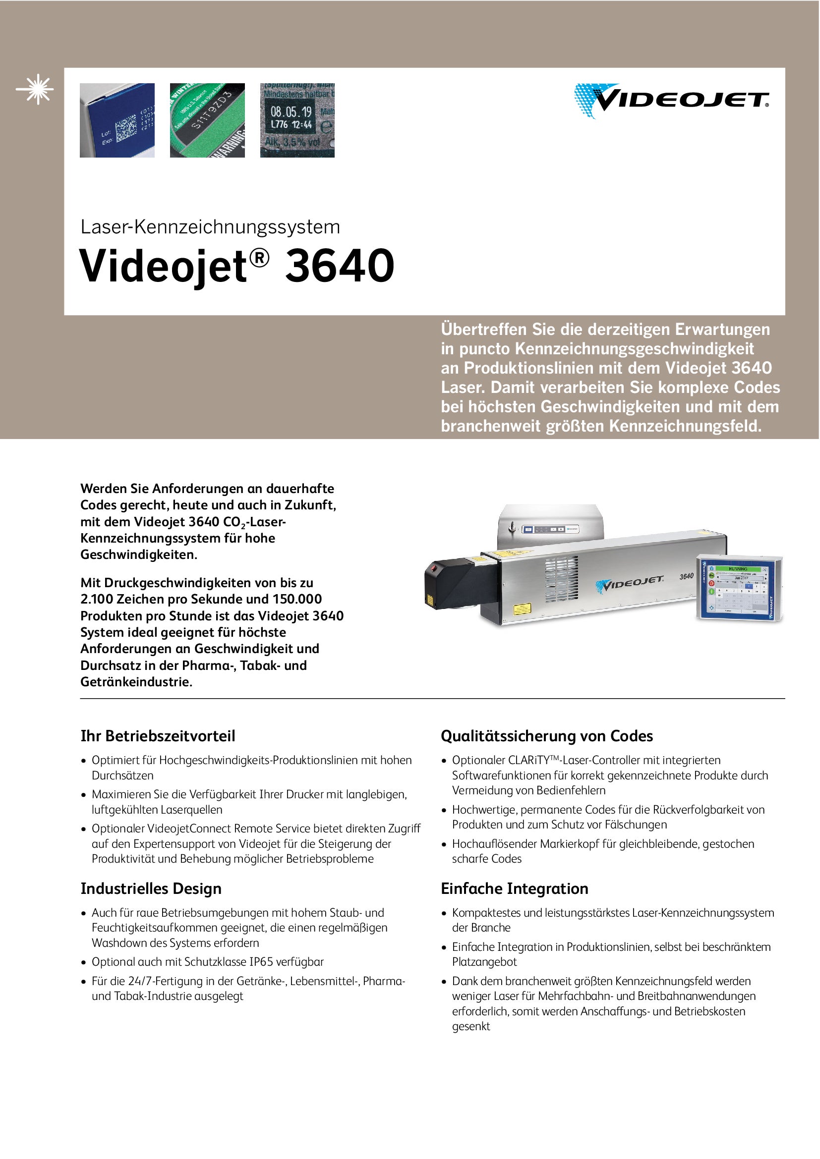 Lasersystem Videojet 3640: Robuste Konstruktion für höchste Leistung: